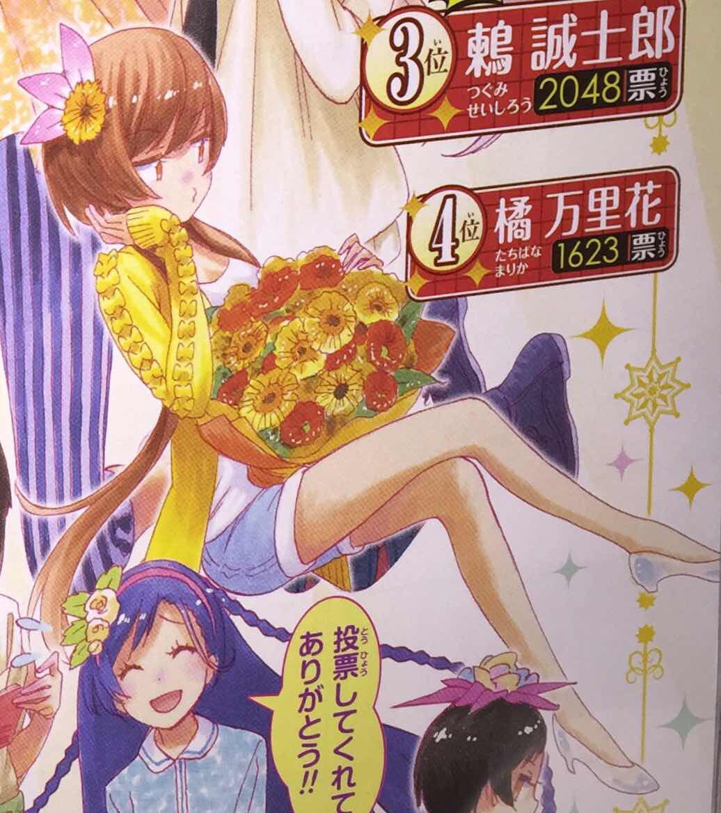 小鳥遊まあいっか 多忙につきツイ減 ニセコイ人気投票 結果発表です 1位 鶫 誠士郎 6票 同率2位 橘 万里花 小野寺 春 ランク外 桐崎 千棘 小野寺 小咲 宮本 るり ポーラ 投票してくれた方ありがとうございました 次開催するときはもっとたくさんの方の投票